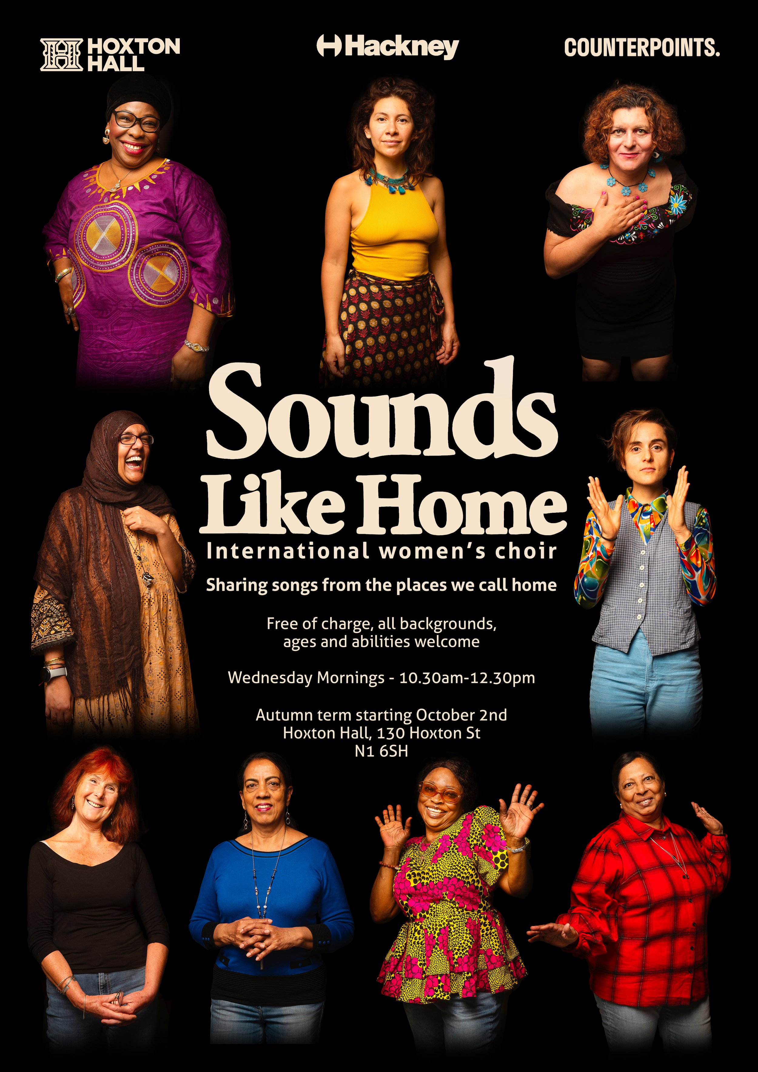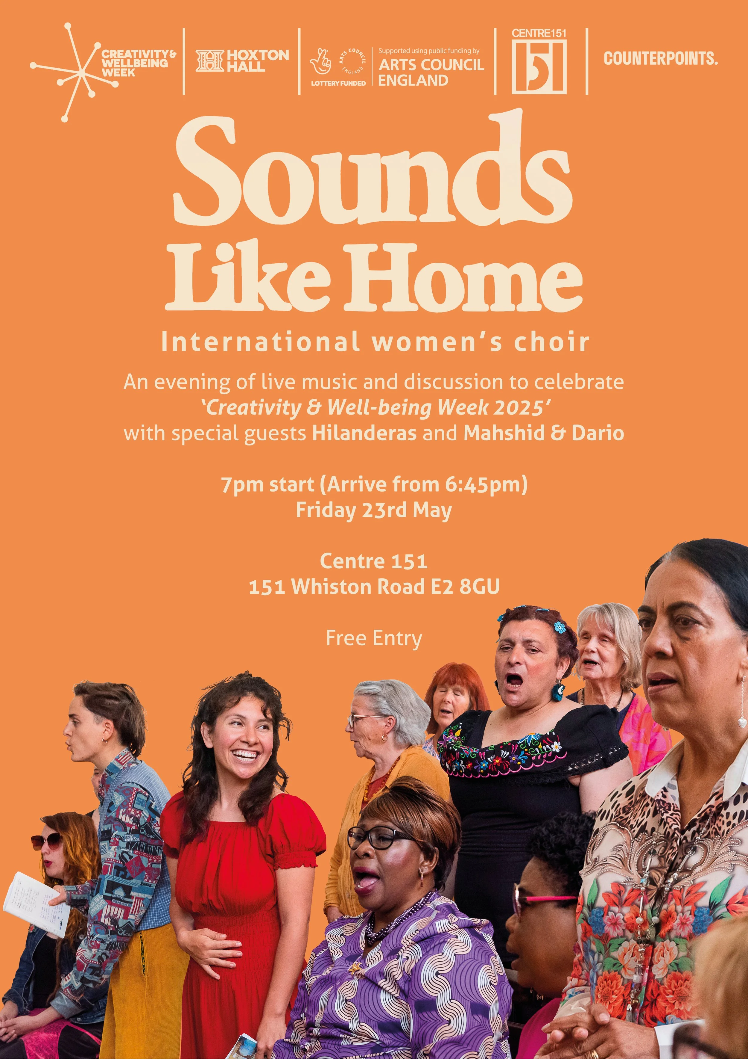 The choir is hosted by Hoxton Hall and supported by Counterpoints Arts. We have received funding from Arts Council England, Hackney Council, Cultural Hackney and Old Street District Community Pot.