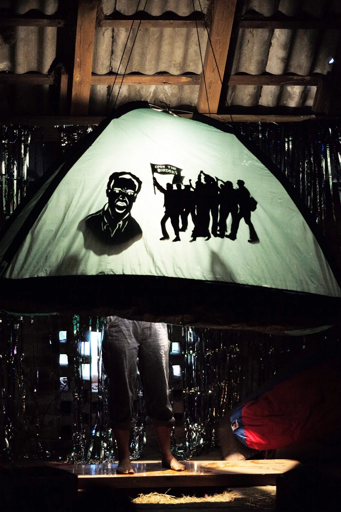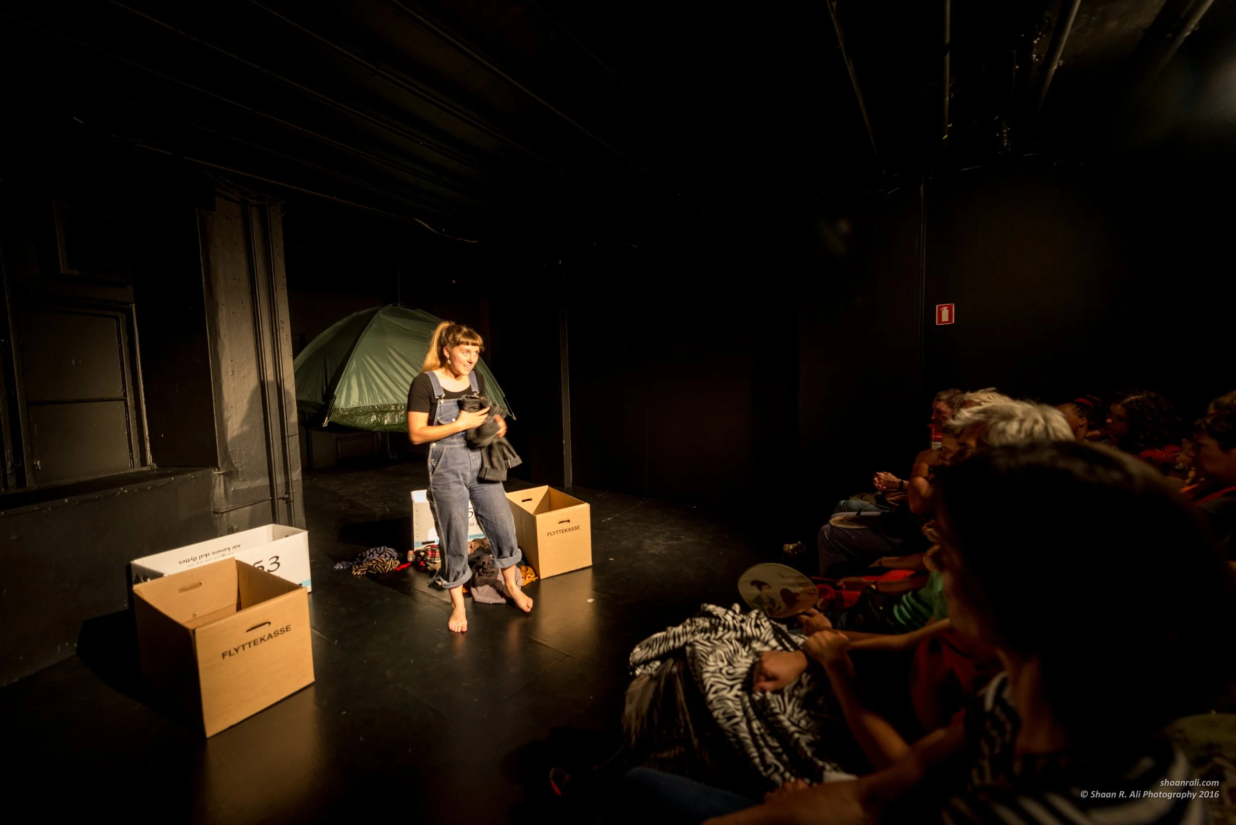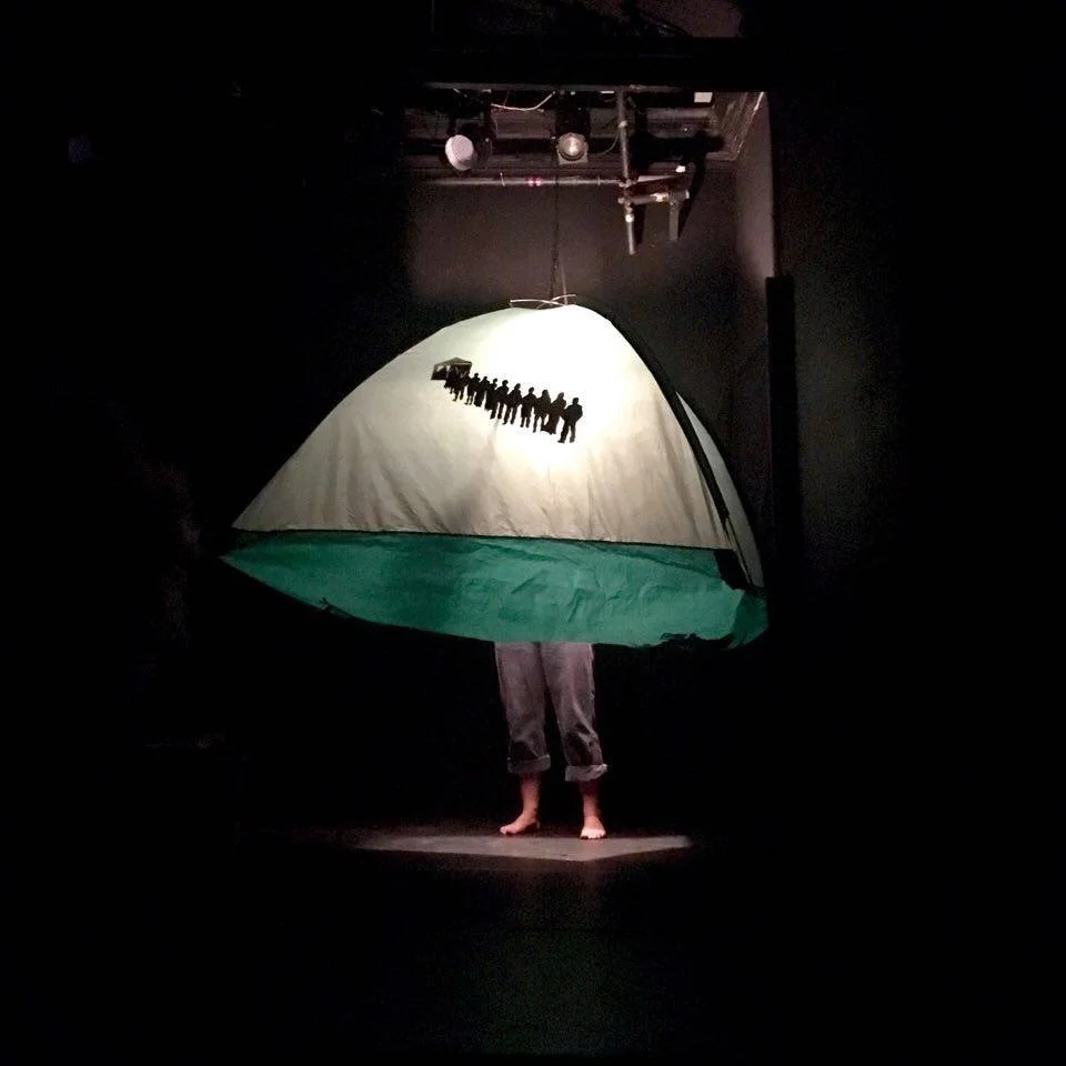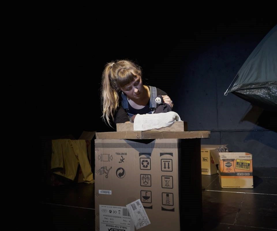 The stage resembles French and Greek makeshift camps, with a simple set made entirely of found objects. Ellen uses a combination of shadow and cloth puppets, slam poetry, live acapella singing and humorous role play to entice the audience into an honest dialogue, using her own experiences as a base to address popular misconceptions surrounding the media frenzy of Europe’s “Refugee Crisis”, 2015-2016.