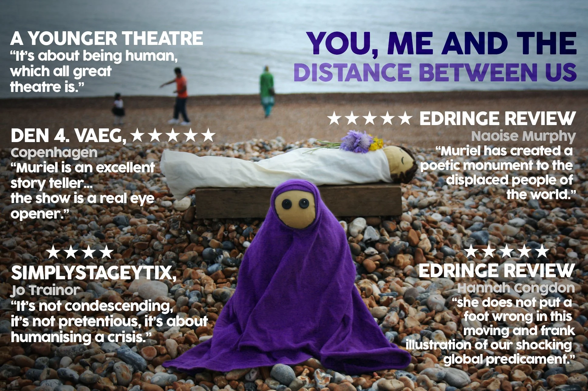 You, Me and the Distance Between Us was devised during the Spring of 2016 and was performed over 50 times at theatres, schools, universities, festivals and community centres around England, Scotland, Germany, Denmark and the Czech Republic.